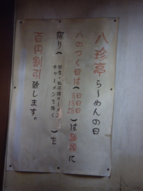 私が小樽に行くとよく訪れるのがこのお店です。場所はちょっと裏通りになりますので、初めての方は判り辛いかもしれません。ここの名物はダールらーめん(680円)という、ドロっとしたあんかけ風のラーメンで、一度食べると病み付きになります。尚、お店の名前に因んで、八の付く日は麺類が100円引きになります。