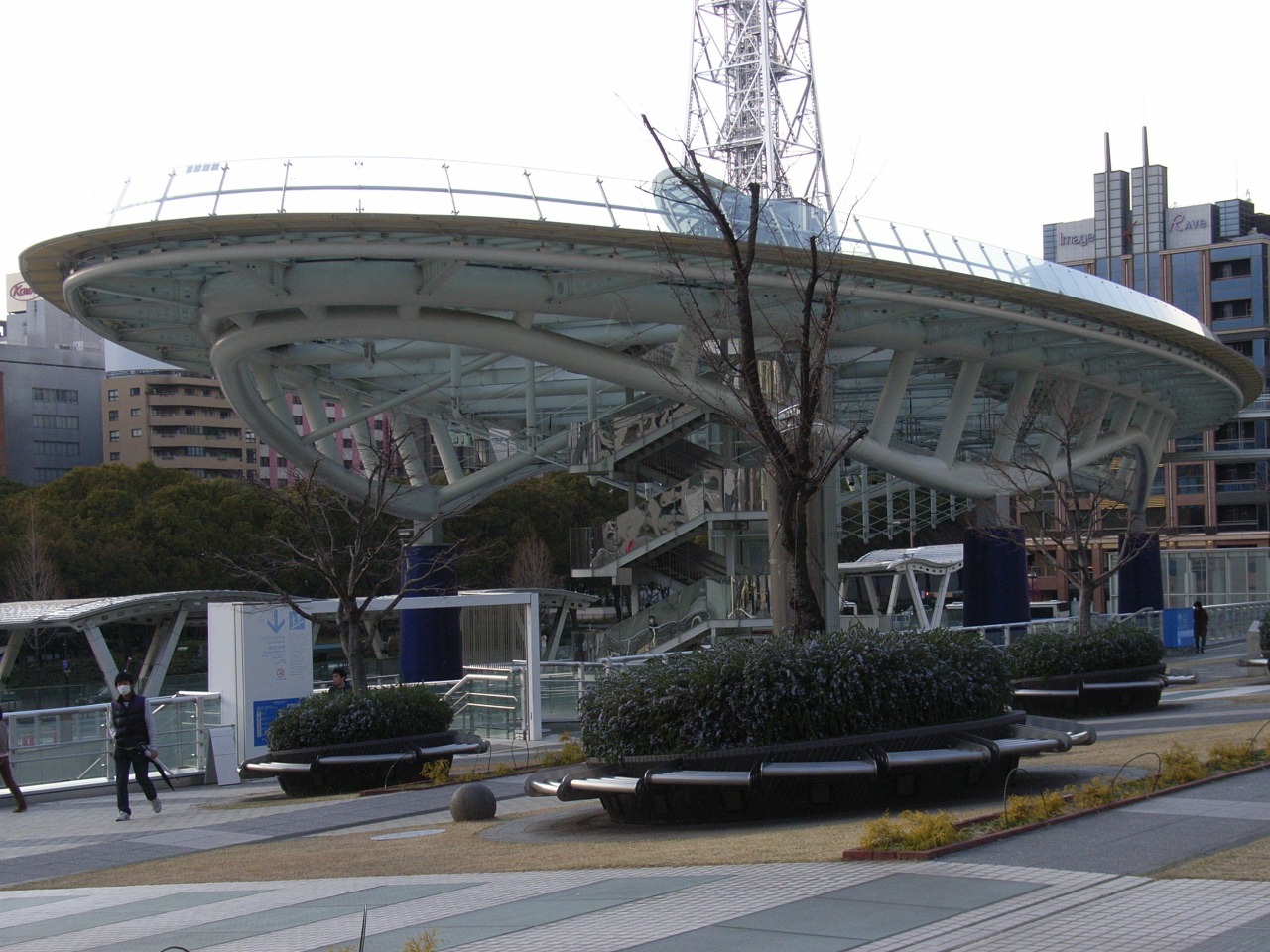 高さ14mの空中散歩が楽しめるオアシス21です。名古屋栄の中心にあり、アクセスはとても良いです。ここからはテレビ塔がすぐ隣に見えるので、テレビ塔を見るにも良い場所です。冬にはスケート?ができるそうで、年中楽しめる場所です。
