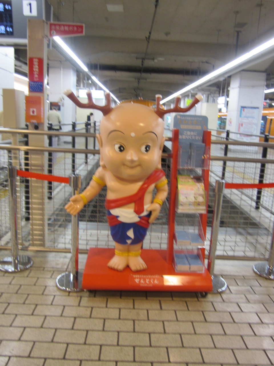 京都から奈良まで行くことができる路線で、改札に入ってすぐのところで遷都くんがお迎えしてくれました。初めて見る遷都くんに、ちょっと興奮してしまいました。