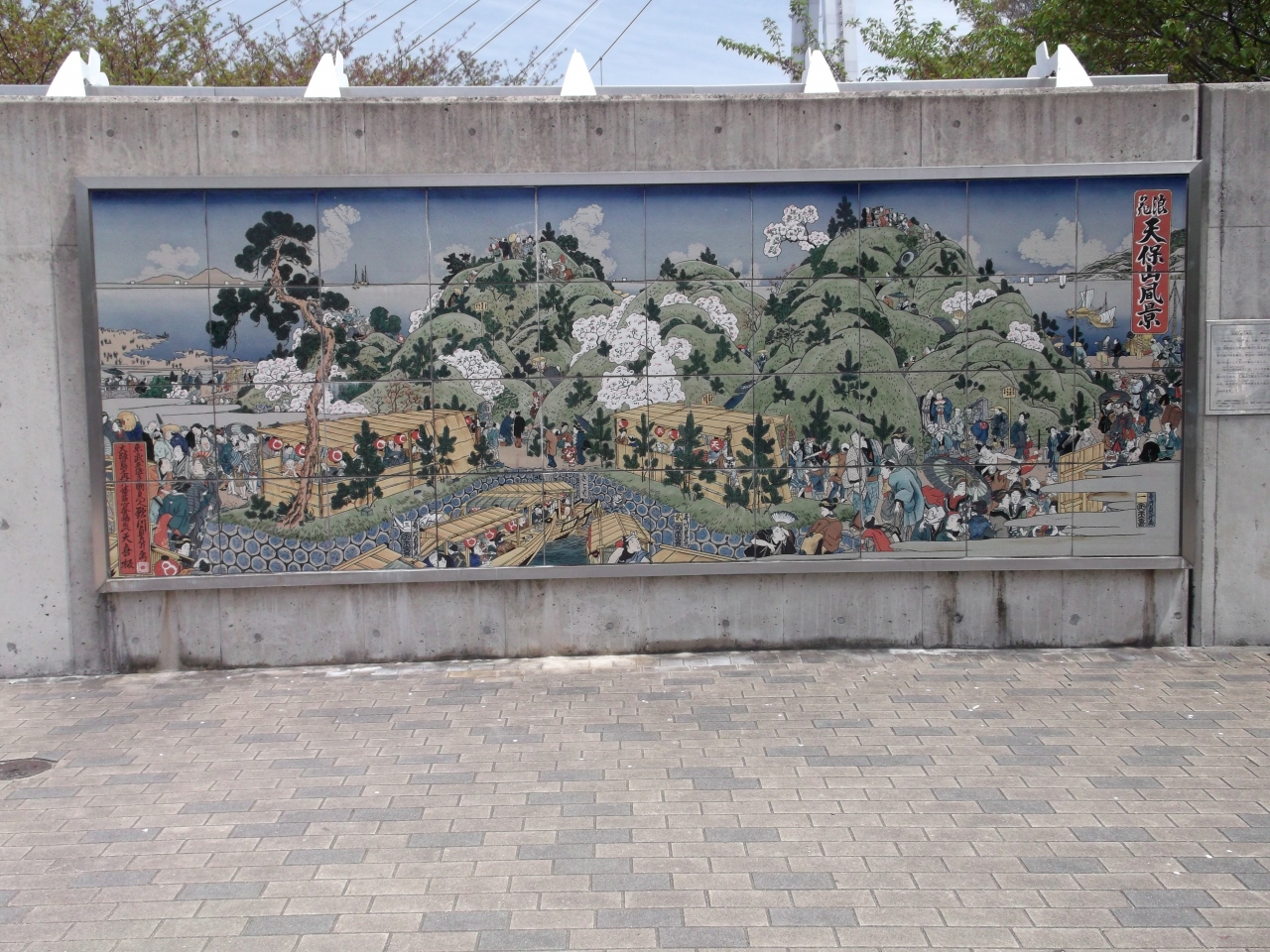 風景の浮世絵が陶板にされて展示されています。