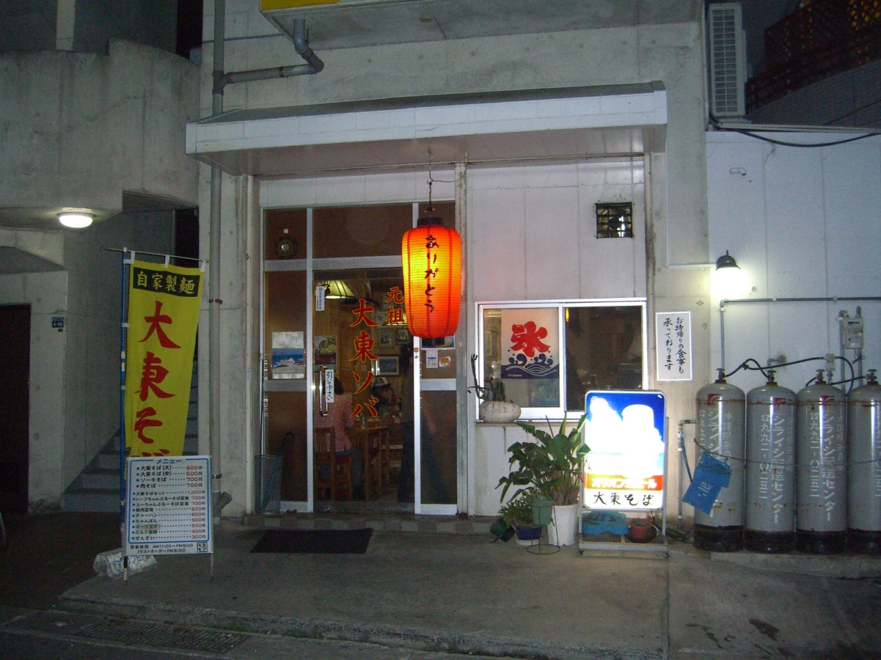 国際通りから美栄橋駅方面に行った裏道にあります。JALシティホテルの裏側あたりです。大東そばと大東すしのセット注文。麺は縮れて太い麺です。大東寿司は小笠原諸島父島で食べた、島寿司に似た感じでした。旨いです。