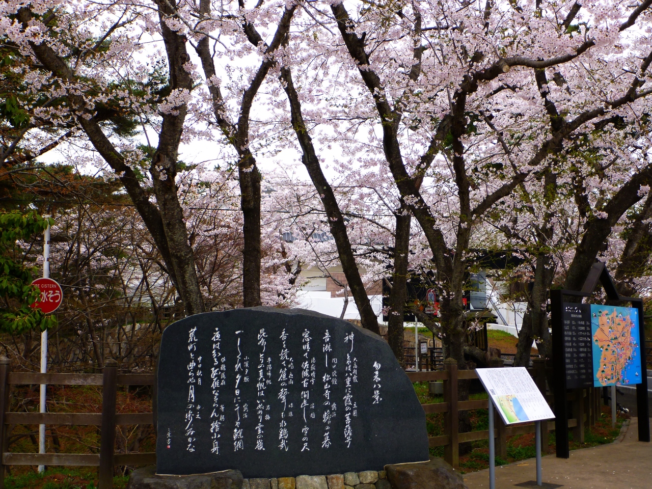 勿来の関のあった場所は公園として整備されていて、その下は桜の名所となっています。公園内には源義家の銅像や、散策のための文学の小路等があり、山上にあるため歩くとさすがに疲れますが、文学館の付近からは太平洋まで見渡せ、過去に関東と分ける関であった場所であることが分かります。