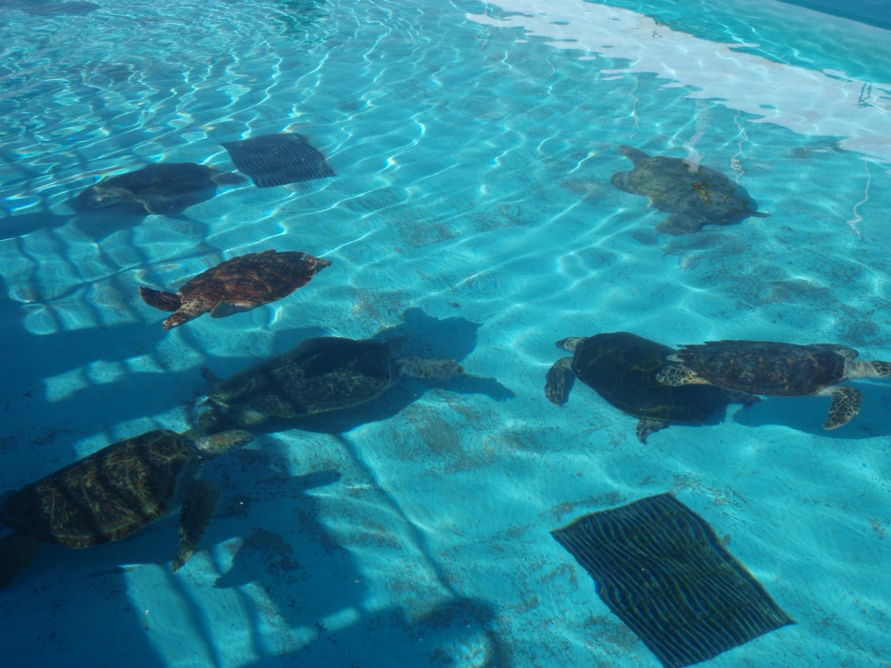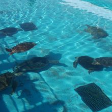 こちらにはたくさんのウミガメが飼育されているので、水槽の中をゆったり泳ぐウミガメを観察することができます。