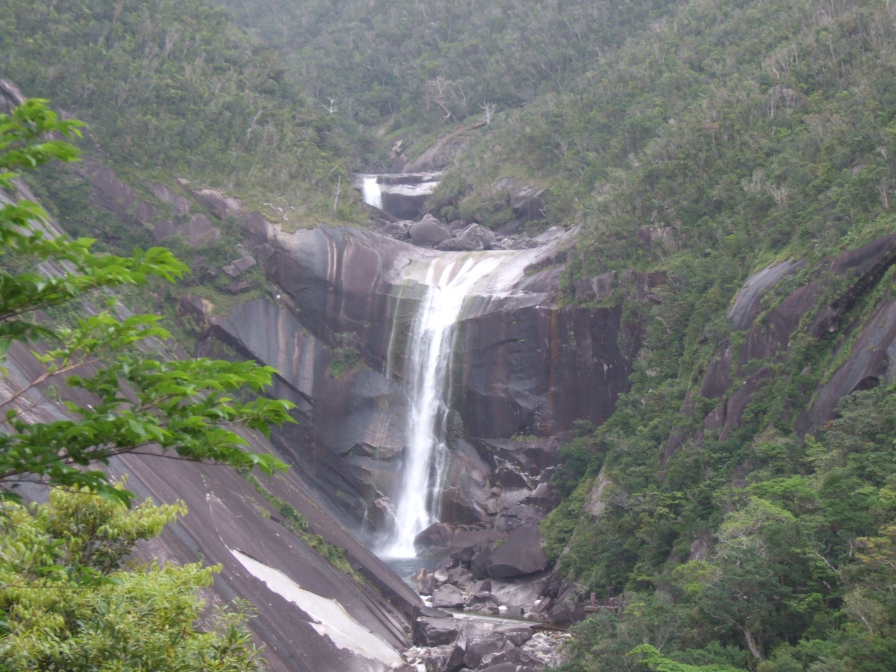 名瀑は多くあるが絶景ポイントから見ることができる場所は少ない。展望台の正面に堂々たる千尋の滝がありその奥にも滝があるので景色に奥行がある。左側には広大なスラブ壁が広がっているがこれほどの規模は日本では数少ないでしょう。登った人がいて記録を見たことがある。屋久島の豊富な雨のたまものでしょう。