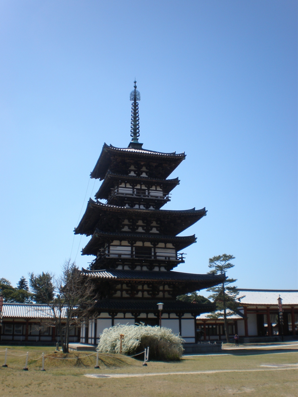 薬師寺は華やかな中に荘厳な雰囲気を感じさせる。東西の三重の塔は各層に裳階をつけ華やかな印象を受けます。現在は東塔は補修工事に入って暫くは拝観できません。