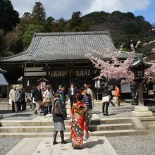 嵐山の中腹にある「十三まいり」の寺。この季節、「十三まいり」でおめかしをした子供たちがたくさんお参りをしていました。満開の桜にうきうきとした気分がこちらにも伝わってきます。なお、境内に続く高台からは、渡月橋越しに嵐山の市街を見下ろすことができます。