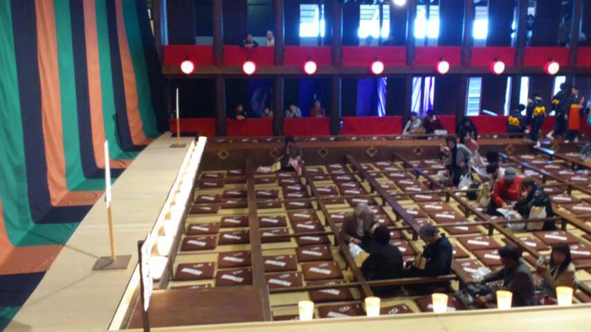 初めて千秋楽に行きました。11時開演ですが、9時30分ごろからお餅つきが始まり、今回は又五郎さんと歌昇さんもつかれました。その場でお餅を丸めてもらえます。後実行委員の人たちの口上もあり、楽しかったです。チケットは取るのはなかなか難しいですが、JR四国とJTBが旅館とセットで取り扱っています。売り出しは、その年によって違うので、11月ごろから、何度も電話して聞きます。(例年12月か1月ごろ)