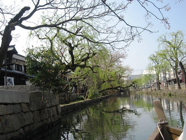 定員5名の小さな舟に乗って、倉敷川を遊覧しました。木造の船に座っていると、体のすぐ横に倉敷川の水面があり、川に親近感を感じました。道を歩いて散策しているときと目線の高さが違うので、また景色が違って見えて新鮮でした。船頭さんの説明を聴きながら、のんびりと川の両側の建物や川岸に造られた雁木などを見学しました。想像していたよりもずっと楽しい時間を過ごすことができましたが、定員が少ないので早い目にチケットを確保しておいたほうが確実だと思いました。チケットは美観地区内の観光案内所・倉敷館で販売されていました。