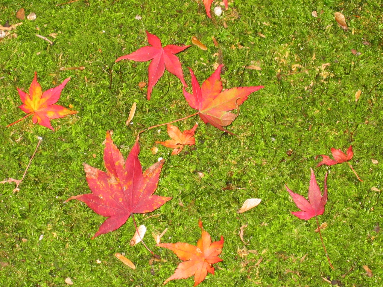 お庭の苔の上に真っ赤なもみじが・・・