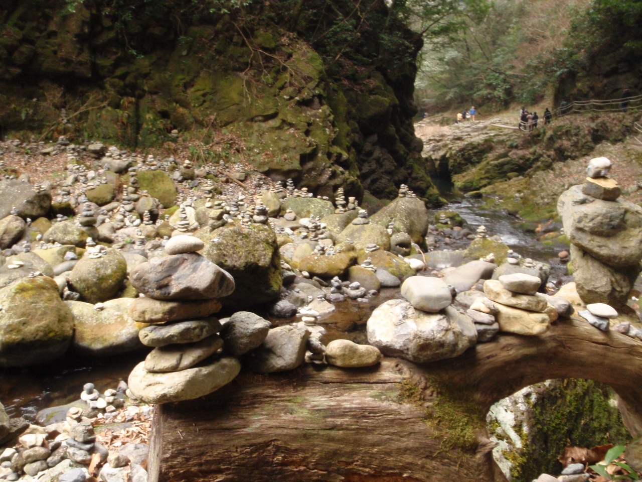天岩戸神社から渓流沿いを10分ほど歩いていくと天安河原と言われるちょっと開けた河原に、仰慕窟(ぎょうぼがいわや)とよばれる洞窟があります。この天安河原は天照大神様が天の岩戸にお隠れになりました際に、八百万の神が集まり、大神様が岩屋からお出ましになる為の会議を開いた場所であると伝えられています。洞窟の中には鳥居と天安河原宮の小さな社殿があります。いまでも人気がないときは多くの神様がここで話をしているとか・・・目をつぶってみればあなたにも見えるかも・・・そんな雰囲気の場所です。天岩戸神社から是非、足のばして訪れてみてください。