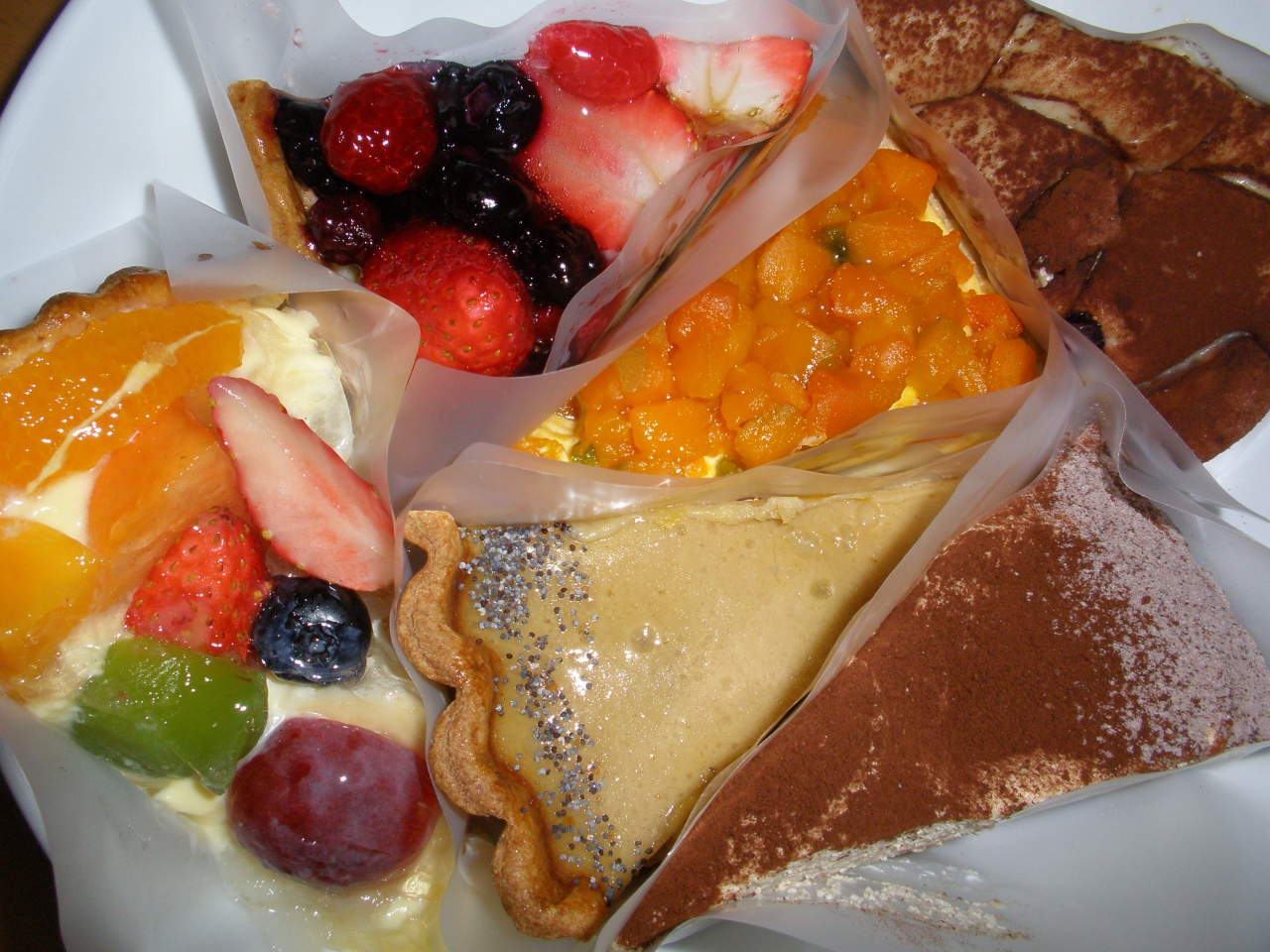 ケーキをテイクアウトしました。まずお店にはいると目にまぶしいくらいのたくさんの旬のフルーツをふんだんに使ったケーキがホールのままずらっと入っているケースがあります。どれもおいしそうなのでついついあれもこれもになります。クリームの甘さも控えめでお気に入りのお店です。季節によってケーキの種類も変わります。