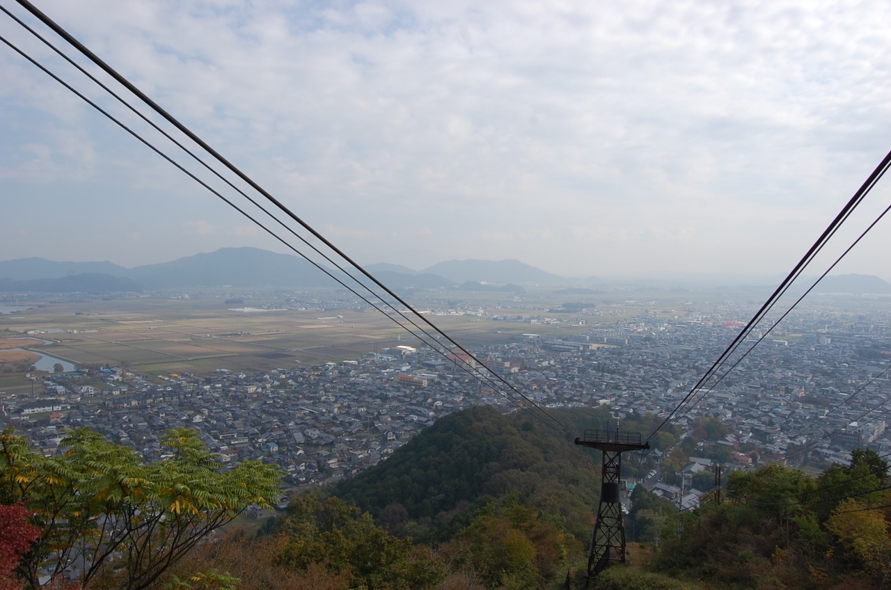 近江八幡の街の大きさや地形が手に取るように判ります。南には平野に街が、北側には琵琶湖が望めます。頂上には神社があり秋は紅葉が美しい。ぐるっと一周することで360度景色が楽しめます。ロープウェーはそれほど長距離ではないのでややお手軽ですが十分楽しめます。