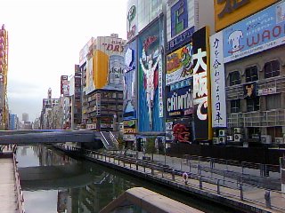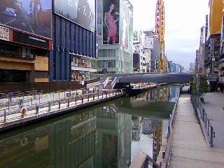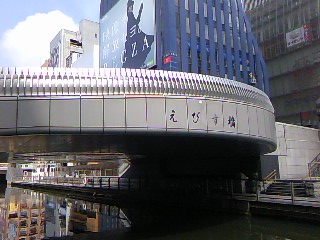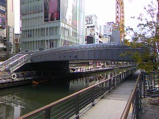 道頓堀川に架かる橋で、ランドマークでもある戎橋(えびすばし)、別名ひっかけ橋。