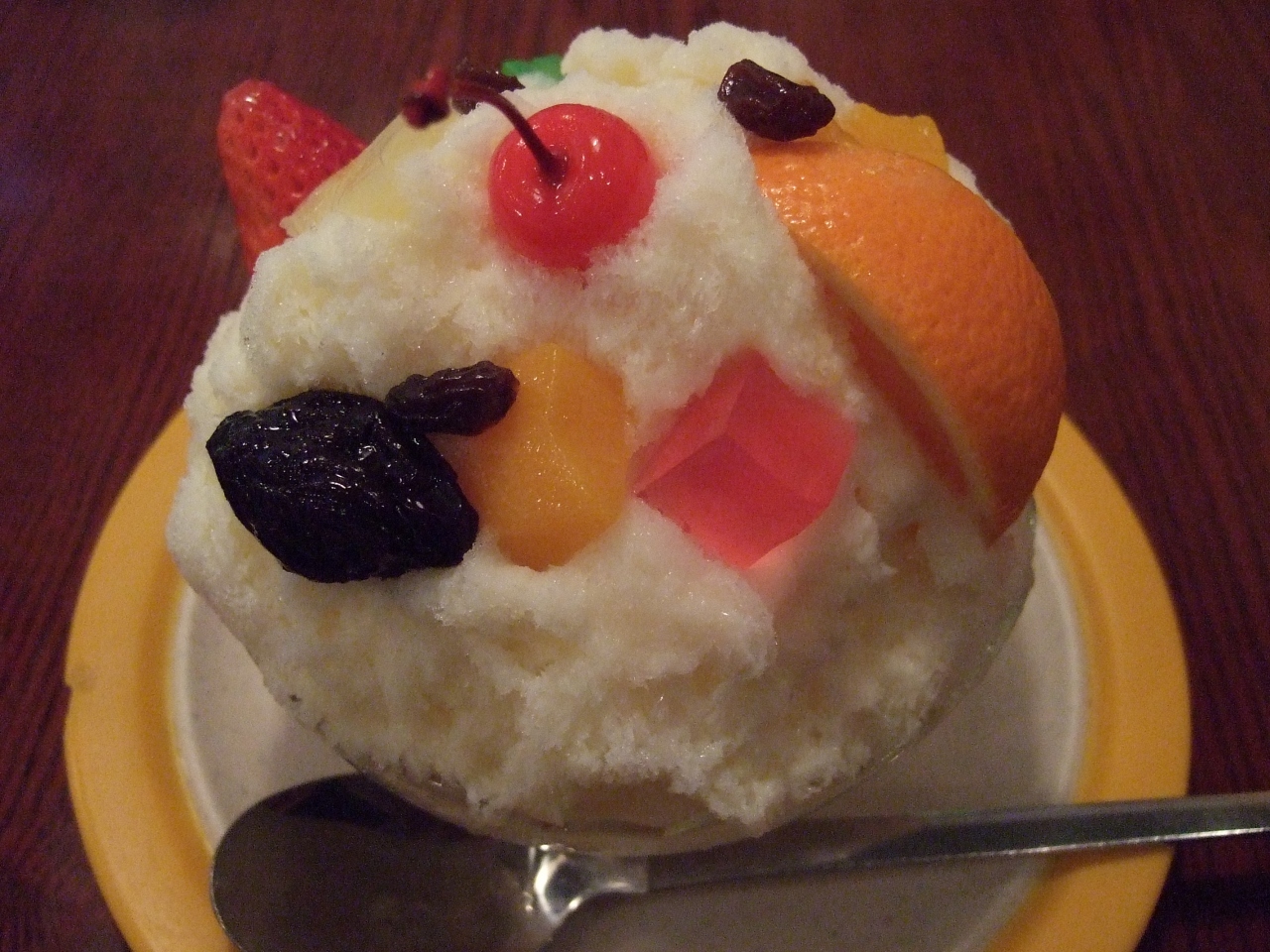 練乳のたっぷりかかったカキ氷にフルーツがトッピング~。