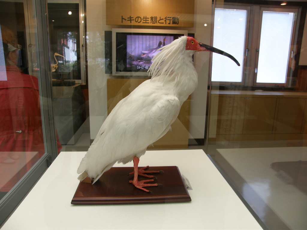 屋外の広いケージの中ではトキが元気に止まり木に止まったりしているのを見られました。