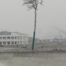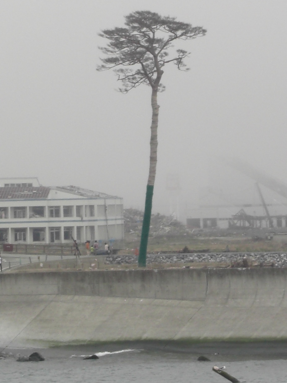 あの松はどれだけの人の心を慰めていることだろう。昔といっても1年と少し前まで、ここに松林があったとは、思えない。今は一本、正確には、立ち枯れた2本の木がそびえるだけとなった。15Mを越す津波が全てを奪い去った。対岸から眺める風景である。
