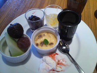 メロンやライチ等の果物から、ケーキ、ブリュレ、ゼリー、アイスも9種類ぐらいあり