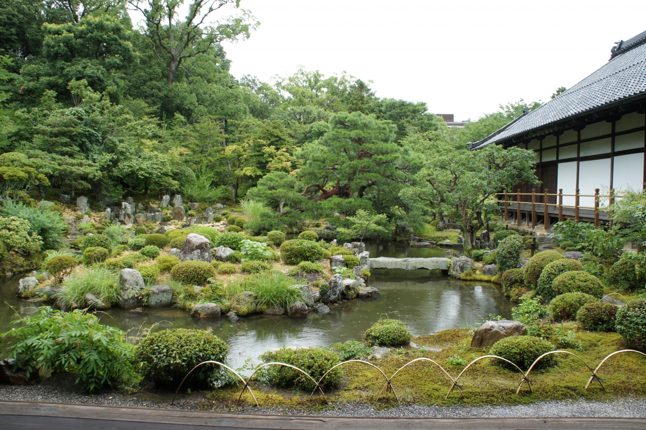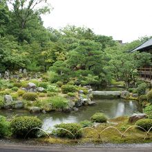 等持院は、臨済宗天龍寺派の寺院。バス停「立命館大学前」から、キャンパスを抜けて行くのが便利です。ここは、足利尊氏の墓所としても有名。霊光殿という建物には、足利歴代の将軍の木像があって、これは荘厳。一見の価値ありです。また、写真の庭園は、夢窓疎石作と伝えられる、これも名高い庭。実際は、江戸時代中頃の作のようですが、石を立てた厳しい配置が気持ちいいですね。左手には茶室清漣亭。京都でも最も古いといわれる、足利義政公好みの茶室を庭のアクセントにしています。こういう庭は雨の日がお勧め。しっとりとした雰囲気で落ち着きました。