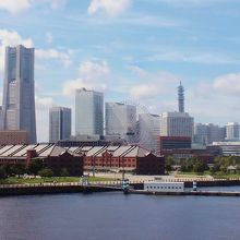 海の向こうにみなとみらいの景色が見える気持ちの良い場所です。