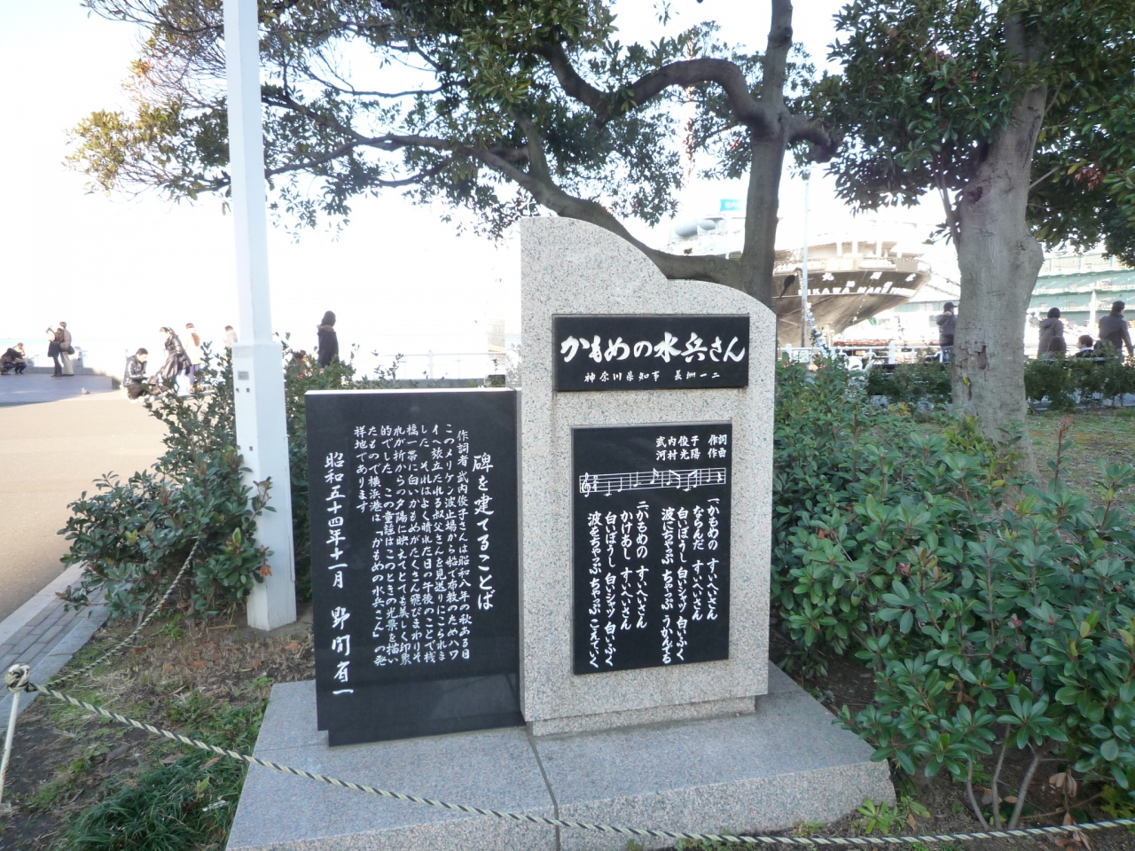 山下公園 (やましたこうえん)には、いろいろな碑が有りますが、今回、紹介するのは、この「かもめの水平さん」です。この歌は、一度は、みなさんも聞いた事が有ると思いますが、昭和54年にここに碑が建てられてそうで、改めてみてしまいました。