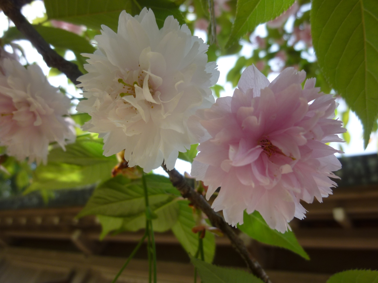 訪れた5月はじめは、都道府県指定天然記念物でもある白菊桜が満開でした。幾重にも重なる花びらをつけた桜はとても可憐でした。1本の木に白とピンクの花がついていて綺麗でした。