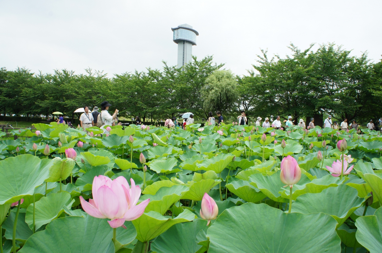 古代蓮の里は、行田市駅から循環バスで。ただし、循環バスは一日4便しかないので、かなり不便。大勢の人が歩いて向かっていましたが、聞くと1時間半のコースだとか。すごいです。さて、古代蓮の里に植えられたは、古代蓮は、公共施設建設工事の際に、地中深く眠っていた多くの蓮の実が偶然出土し、自然発芽して、近くの池に一斉に開花しているのが発見されたもの。意外に広い敷地いっぱいに咲く古代蓮の大きさは30センチもあって、ピンクの花弁が美しいです。朝早く花を咲かせ、お昼には閉じてしまう。これを4日繰り返して散るのだそうです。ボランティアの方がいて、細かく説明してくれました。