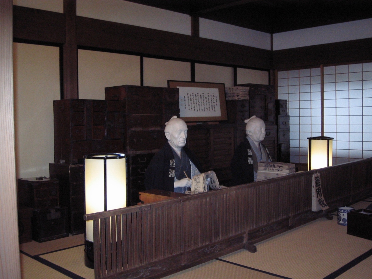 内部は人形を使い当時の様子を再現している。廻船問屋の姿を当時の建物で見ることので貴重な場所です。