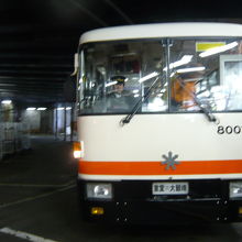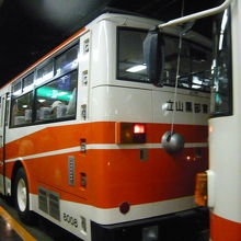 室堂から大観峰まで、標高2,450メートルの高さに掘られたトンネルの中を走るバスです。バスではありますが、架線からの電力を動力としているため、無軌条電車という扱いだそうです。