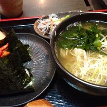 「豚すい」とおにぎりをセットを、ランチでいただきました!人気の「豚すい」は、なかなかの具沢山で、これを平らげるだけでお腹いっぱいになるほど。初めて食べる料理でしたが、おいしかったです!おにぎりは、10種類程のバラエティがあり、「チャンジャ」や「ホルモンキムチ」などの変わった具も...。