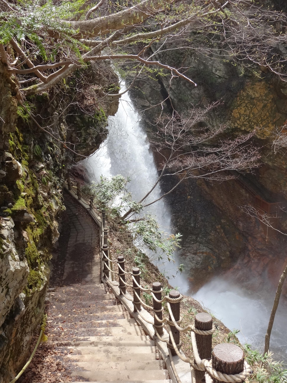 山田温泉からさらに山を登る方向に車で10分弱、小さな売店と駐車スペースが目印。ここから徒歩で山中を下に向かって下りて行くこと2~3分、突然現れる凄い水量の滝。轟音にも圧巻されますが、滝の裏側や滝の下にも行けて様々な角度から簡単に見られる滝はそんなに無いのではないでしょうか。とにかく迫力は満点です。