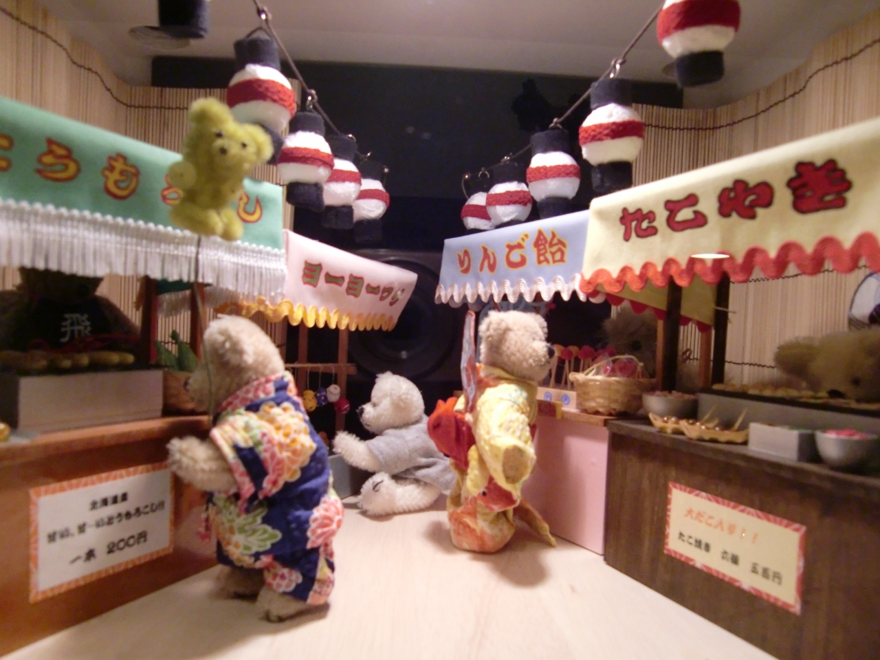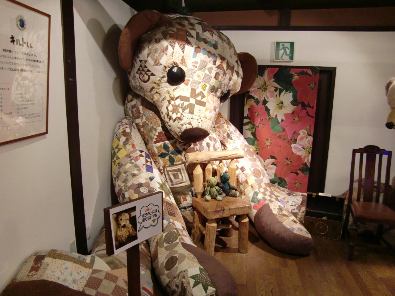 館内はテディベアでいっぱいです。展示の仕方も工夫してあり、アンティークからミニチュア、巨大ベア等いろいろでした。テディベアカップルのいるチャペルもありました。隣のショップで売ってるオリジナルのテディベアが手触り良しで1体購入しました。
