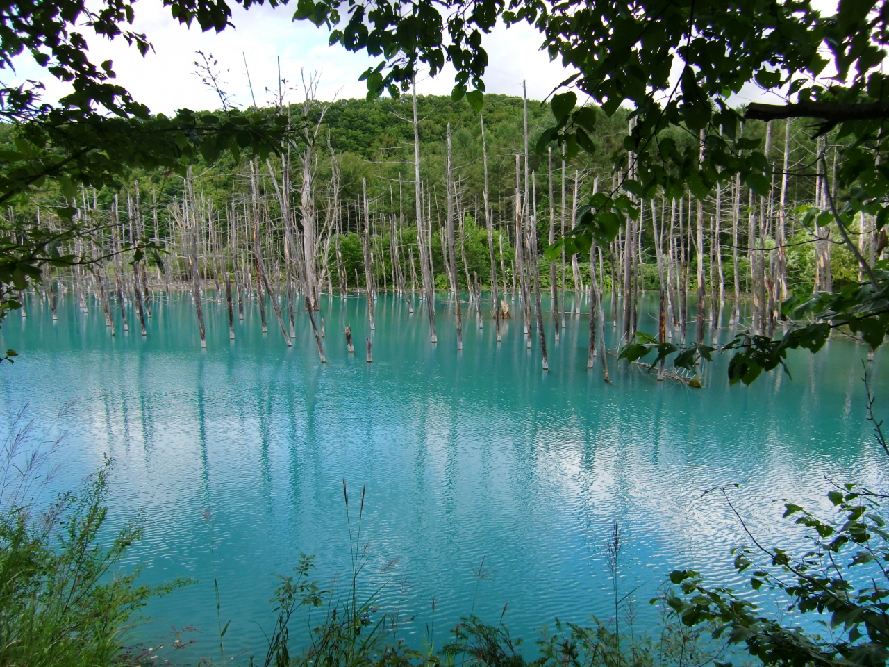 車で行きました。駐車場から10分くらい歩くと青い池があります。本当に青いのでびっくりしました。クールバスクリンのような色です。中央に生えてる白樺も雰囲気があります。観光客が結構いるので、熊に注意の看板も怖くありませんでした。