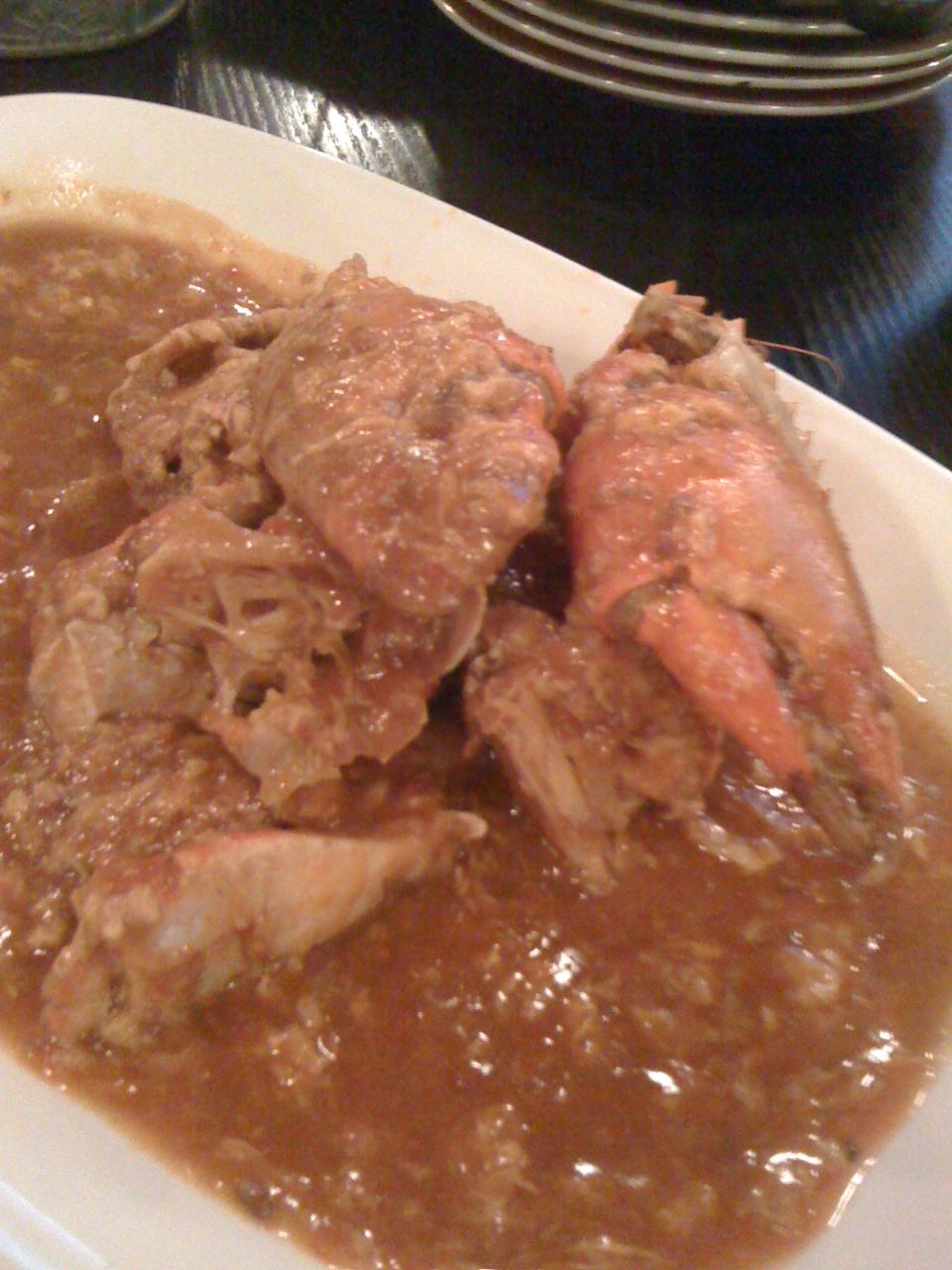 シンガポールスタイルで揚げパンを蟹に付けていただくとおいしいです。