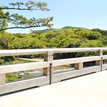 ケヤキ・ヒノキでできているこの橋は、20年毎に架けかえられて、神宮式年遷宮の4年前に架け替えられるそうです。