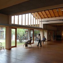 連続した木造の屋根は安曇野の風景と柔らかい内部空間を創り出しちひろの作品をやさしく包み込んでいるようです。木製の家具も何ともかわいらしいものです。