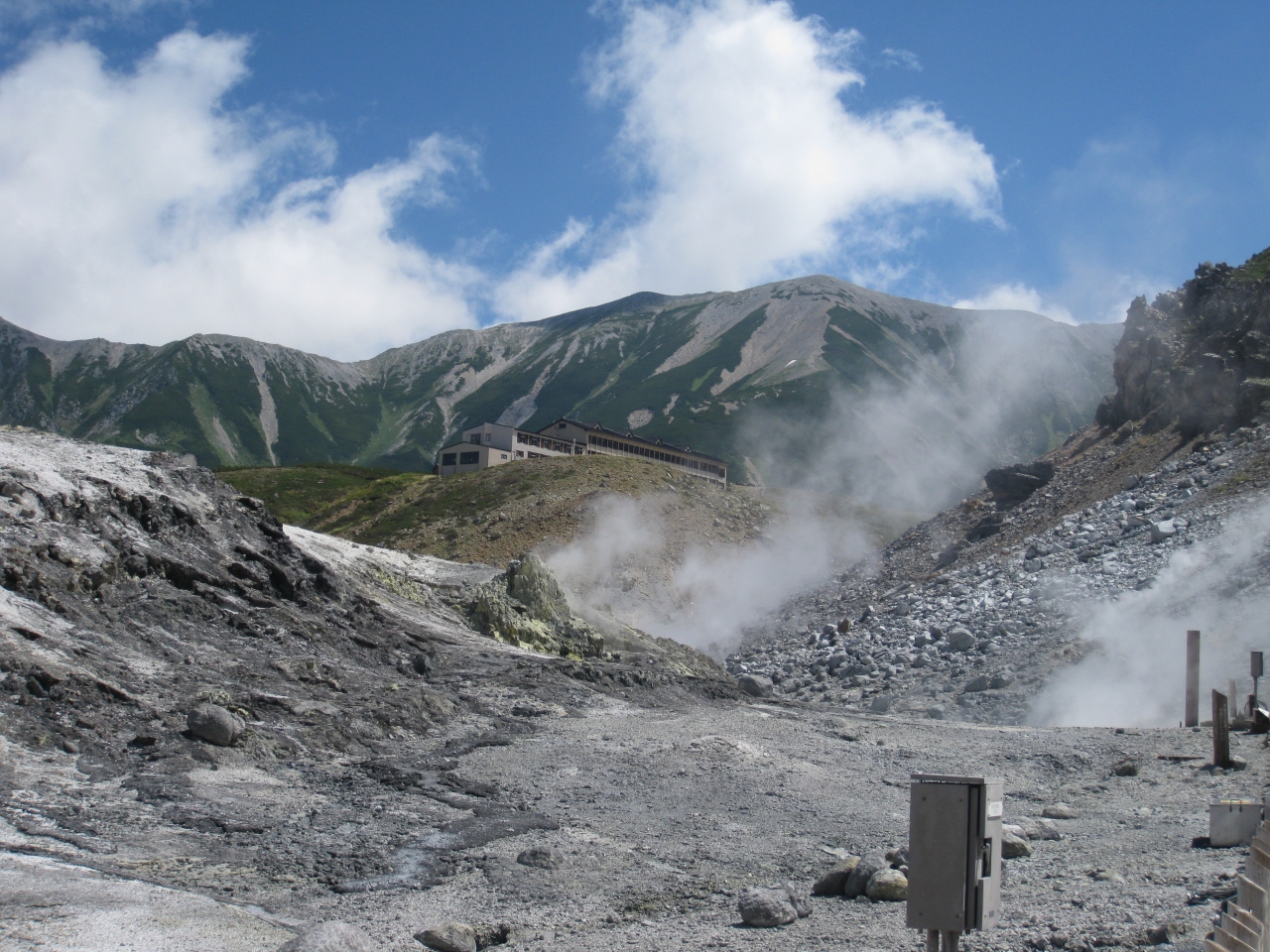 友人が北陸に遊びに来て、立山アルペンルートに出かけた時に、地獄谷まで歩いていってきました。室堂から、かなり急な坂道を下って降りたところにあります。硫黄の匂いが充満して臨場感が溢れてきます。帰りの階段はかなり長いので、途中で休息している方も多くおりました。