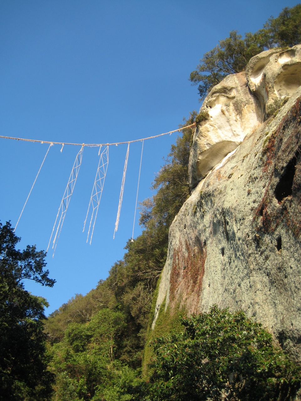 「はなのいわや」は高さ45メートルの巨巌そのものを御神体とした日本最古の神社といわれています。祭神は伊弉冊尊(いざなみのみこと)と軻遇突智神(かぐつちのかみ)で、毎年2月2日と10月2日には、わら縄で編んだ180mの網を巨巌の上から引き伸ばし、境内南隅の松の根本に結び付ける神事が行なわれます。日本書記神代の巻一書にはこの花の窟に関する記載があります。太古の人々のおおらかな息遣いを間近に感じたような貴重な経験を致しました。