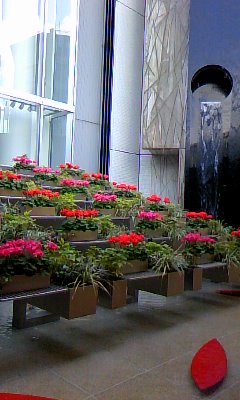 地下から行くと入り口の両側に季節時折の花が飾られていて目を楽しませてくれます。