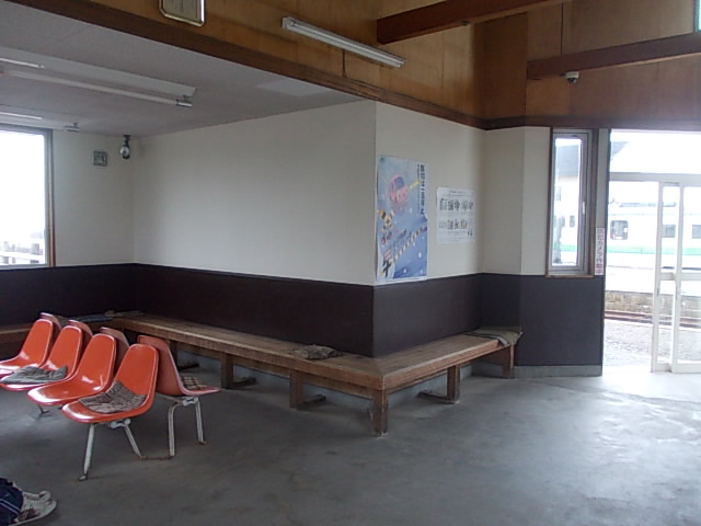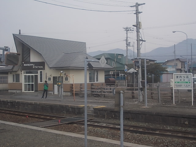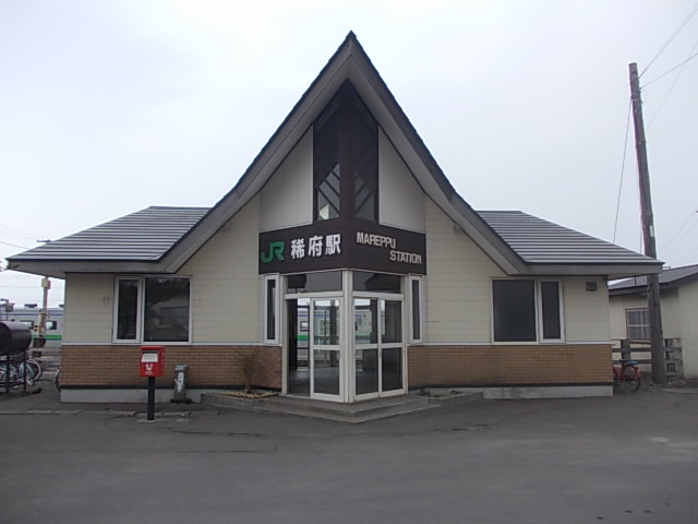 私が室蘭本線上のこの界隈で、美しさという意味で一番好きな駅舎がこの稀府駅です。ここの駅舎の魅力は、駅名表記が右側から見るとアルファベット表記で、左側から見ると漢字表記で楽しめるなど、ちょっとスタイリッシュな配慮がされていることです。構内もとても清潔感に溢れていて、女性の方でも安心して利用できる駅だと思います。