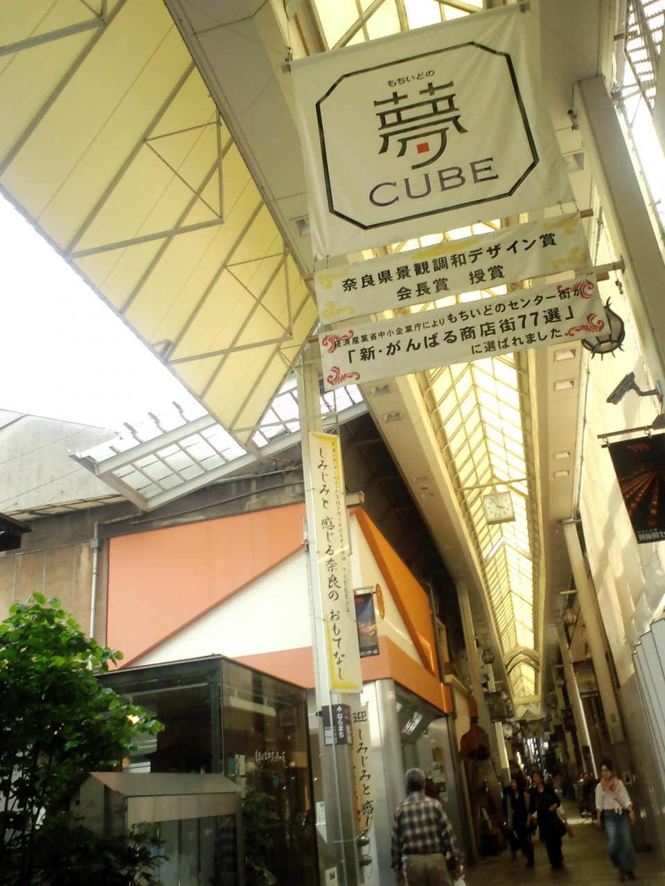 奈良駅周辺にはいくつか商店街があるものの、ここが一番有名。駅チカの商店街と違ってなんとなく落ち着いた空気が漂います。入っているお店も実はちょっと個性的。なかほどに通りの名前の由来を書いた板がありました。