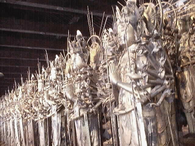 三十三間堂 の名の由来は、本堂の柱の間の数が33あるということからのようですが、さすがに33間あれば眺めは圧巻です。