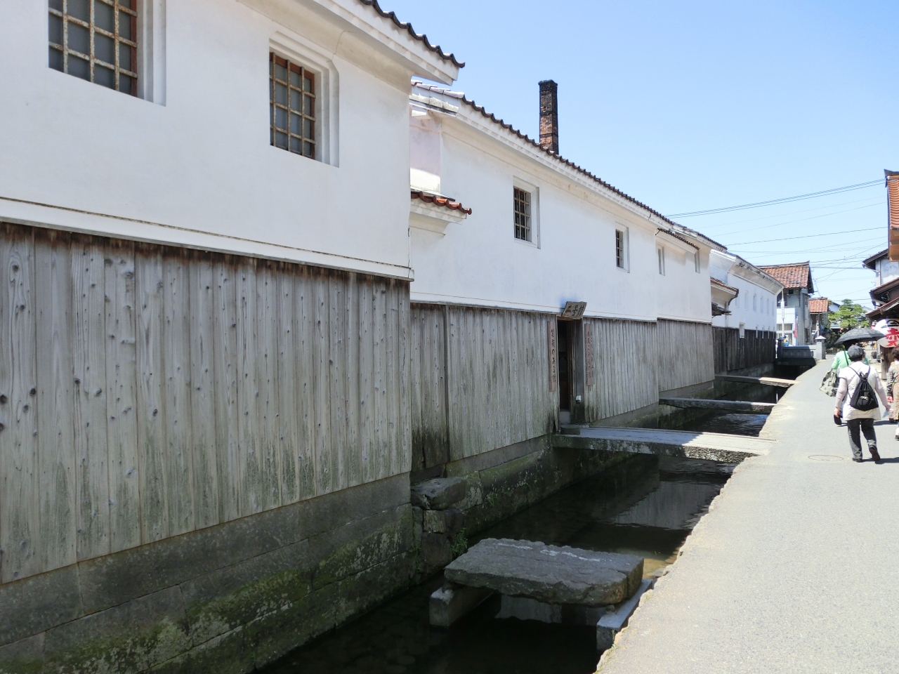 レトロな白壁の町並みに、工芸品やアンティークなどのお店が並びます。水路に鯉などが泳いで、情緒があります。土蔵群のあたりはものすごく道が狭いので、無料駐車場に車を止めてゆっくり歩いて回ったほうがいいです。