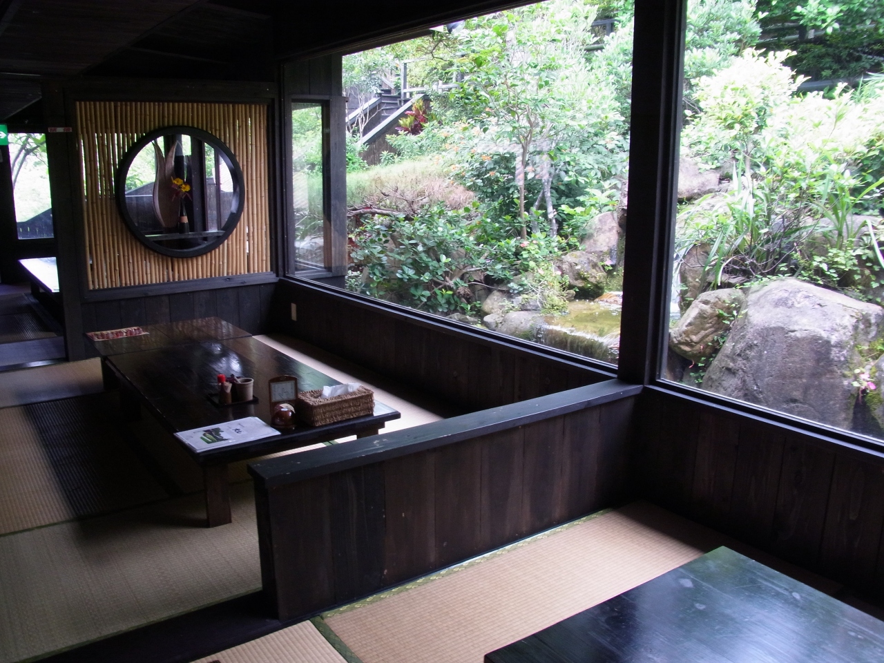 名護パイナップルパークにほど近い古民家を移築したレストラン。かなり人気で、お昼どきは混雑するのでピークシーズンには少し時間をずらした方が良いかもしれません。窓からの景色が1階からも2階からも楽しめ、食事後には散策することもできます。お食事は沖縄料理で、お得なキッズメニュー(そば、おにぎり、ゼリー)もあります。子連れにもお薦めのレストランです。実際の民家を移築しているので雰囲気があります。