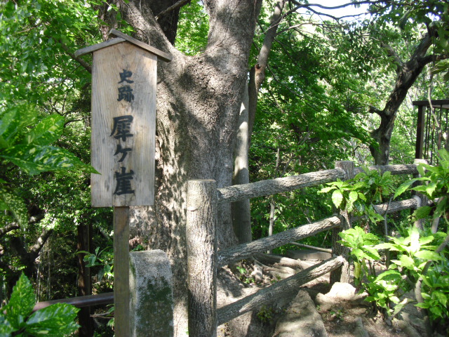 三方原合戦の史跡としてはここが一番だと思います。ここは、公園の柵からほぼ直下に深さ13mほどの谷が800mほど続いています。覗き込むと、木々が生い茂り昼でも暗く、これが車がひっきりなしに通る幹線道路沿いだとは思えないほどです。ここには伝説が残っていて、三方原合戦のとき武田軍に追われて城へと逃げた徳川軍がこの崖に白い布を渡したそうです。真っ暗闇の中、追ってきた武田軍がそれを道だと思って足を乗せたところ崖から転落して多数の兵が命を落としたとか。そしてその後、夜更けになると人や馬のうめき声が聞こえたり、周辺でけが人が続出したりしたそうです。そんなたたりが本当に思われるような、不気味な雰囲気のところです。