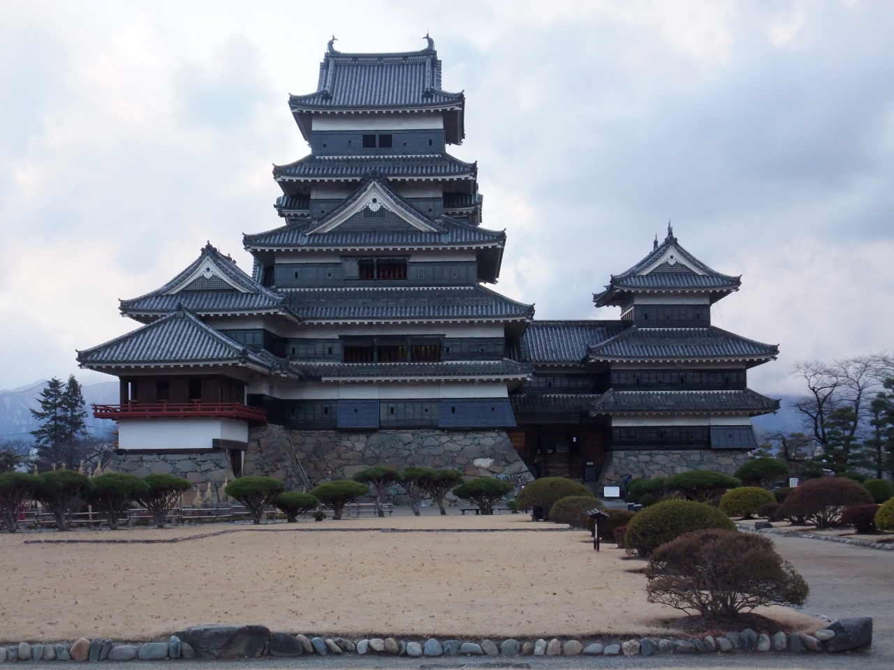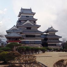 松本城は水堀で囲まれた典型的な平城で、天守閣は国宝に指定されています。