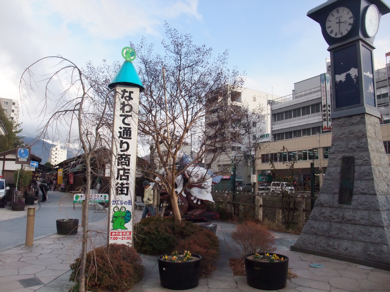 縄手とは江戸時代末の旧町名だそうです。この地は、松本城の堀と女鳥羽川に挟まれた細く長い縄のような堤だったので、このように呼ばれたのだそうです。