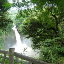 展望広場から滝は真正面に見えますが、展望広場へ辿り着く途中の道からも滝を見下ろすように見えます。個人的には滝から真正面の位置よりも、見下ろす位置の方が水の勢いが感じられて良いと思いました。