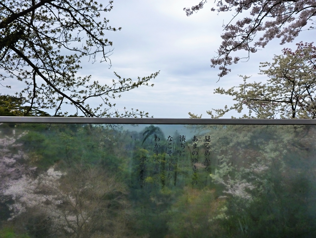 入り口の前からは、アクリル板に書かれた和歌の向こうに広大な太平洋が見え、良い眺めを堪能できます。