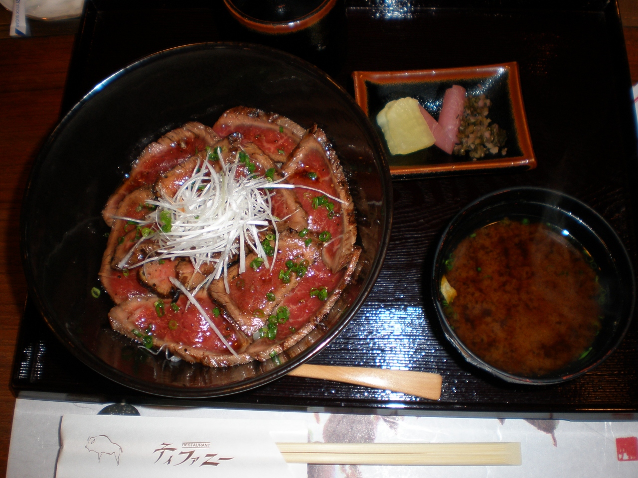 ランチでおすすめなのは、牛のたたき丼、フレッシュなお肉のたたきがたっぷりと載っていてタレと薬味の絶妙な味は忘れられません。