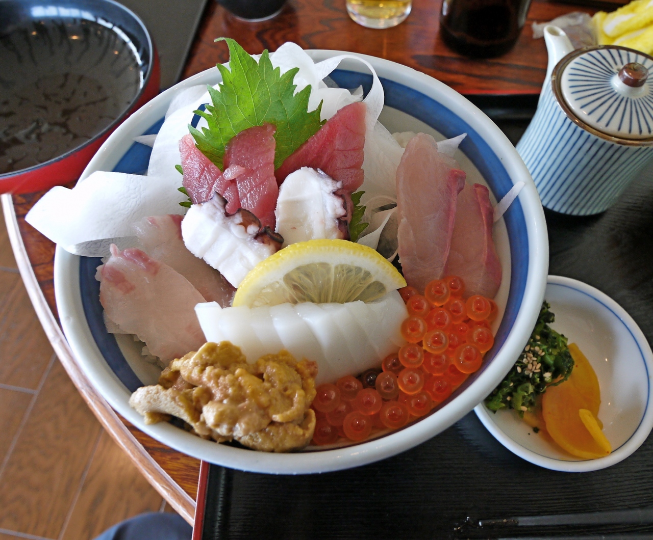天草五橋第五橋松島橋のふもとにある.海鮮丼1600円,刺身定食1350円,貝汁400円を食べた.新鮮だがとくに海のそばに来たというほどの豪華さはない.都会と比べてもそんなに新鮮盛りだくさんという印象はない.有名になりすぎか.しかし窓からの景色は良く,天草に来て食べたという印象は残る店だ.